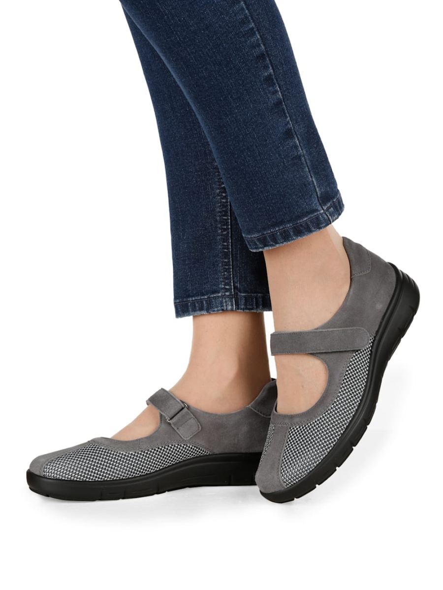 Dieser Slipper von Vamos sind aus Rauleder und Textilmaterial gefertigt. Mit Wechselfussbett und Fur Einlagen geeignet. Flacher Absatz mit einer Hohe von 3,5 cm. Guten Halt garantiert die dampfende Sohle aus Synthetikmaterial. Die Decksohle ist aus Textilmaterial. Dieses Modell hat profilierte Sohle. Fur einen Fuss mit Extra-uberweite geschnitten. Schliessen lasst er sich uber einen Klettverschluss fur ein leichtes An- und Ausziehen. Diese Schuhe entsprechen dem Grossensystem: Britisch (UK).