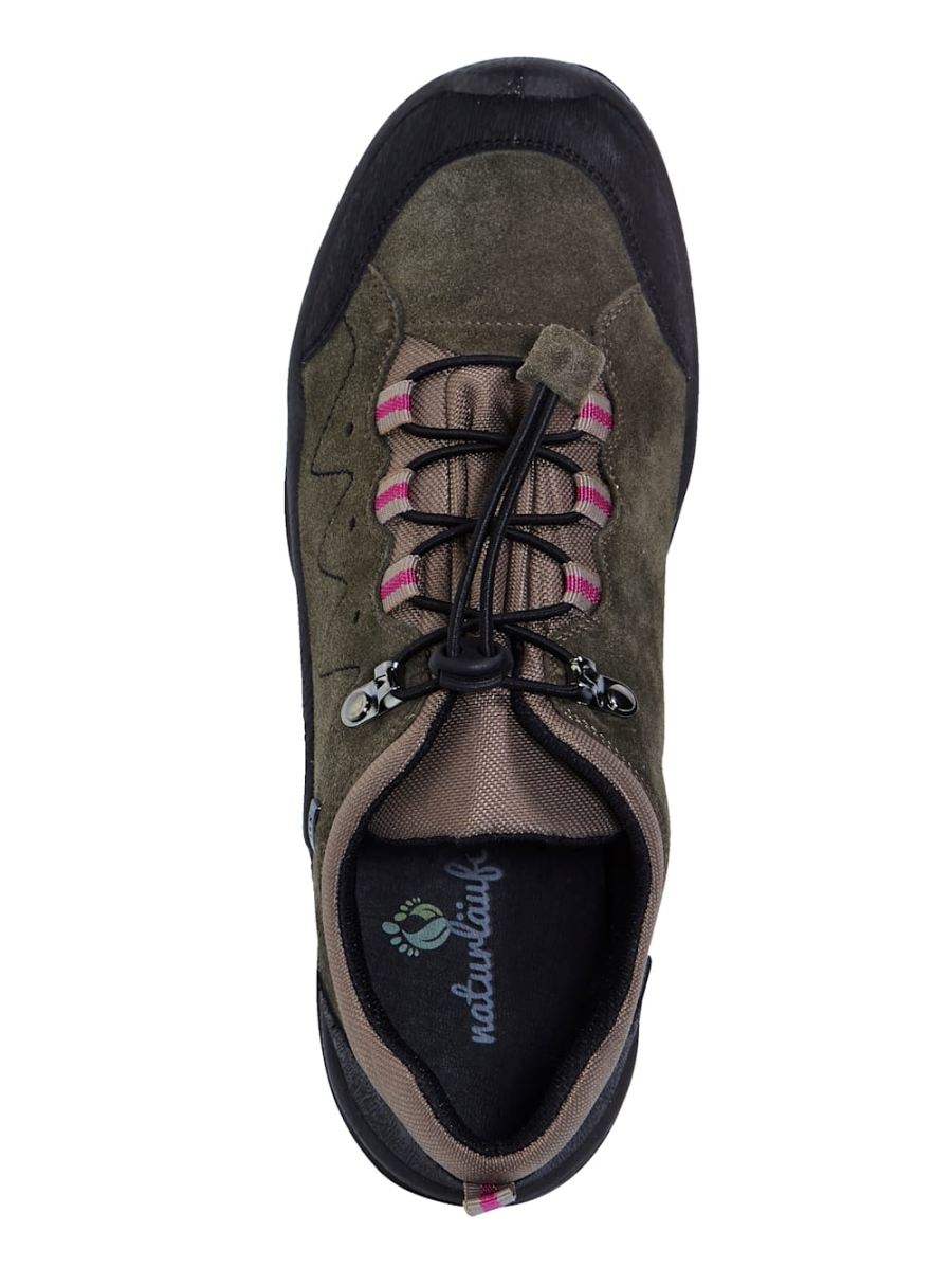 Diese Trekkingschuhe von Naturlaufer sind aus Leder gefertigt. Mit Wechselfussbett. Flacher Absatz mit einer Hohe von 3 cm. Guten Halt garantiert die Sohle aus Synthetikmaterial. Die Decksohle ist aus Leder. Dieses Modell hat profilierte Sohle. Fur einen normalen Fuss geschnitten. Schliessen lassen sie sich uber eine Schnurung. Diese Schuhe entsprechen dem Grossensystem: Europaisch (EU).