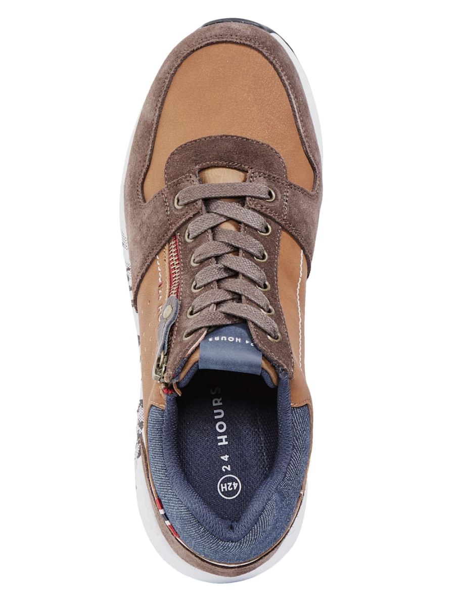 Dieser Sneaker von 24 Hours sind aus Rauleder und Synthetikmaterial gefertigt haben definitiv einen Platz in Ihrem Schuhschrank verdient. Mit Wechselfussbett. Flacher Absatz mit einer Hohe von 3,5 cm. Das Plateau hat eine Hohe von 1,5 cm. Daruber hinaus ist die Sohle aus Synthetikmaterial abriebfest. Die Decksohle ist aus Textilmaterial. Dieses Modell hat leicht profilierte Sohle. Fur einen etwas kraftigen Fuss geschnitten. Zum offnen und Schliessen hat er eine Schnurung. Diese Schuhe entsprechen dem Grossensystem: Europaisch (EU).